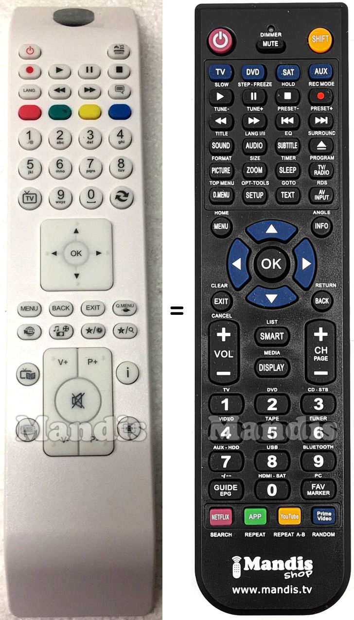 Below, we will show you the correspondence between each button on the original remote control and the button that performs the same function on the replacement remote control. In some cases, you may need to press the SHIFT key before pressing another button to perform certain actions. These additional functions are often not widely used and are included to facilitate understanding of the replacement remote control, or because the original remote control has more buttons than its equivalent.