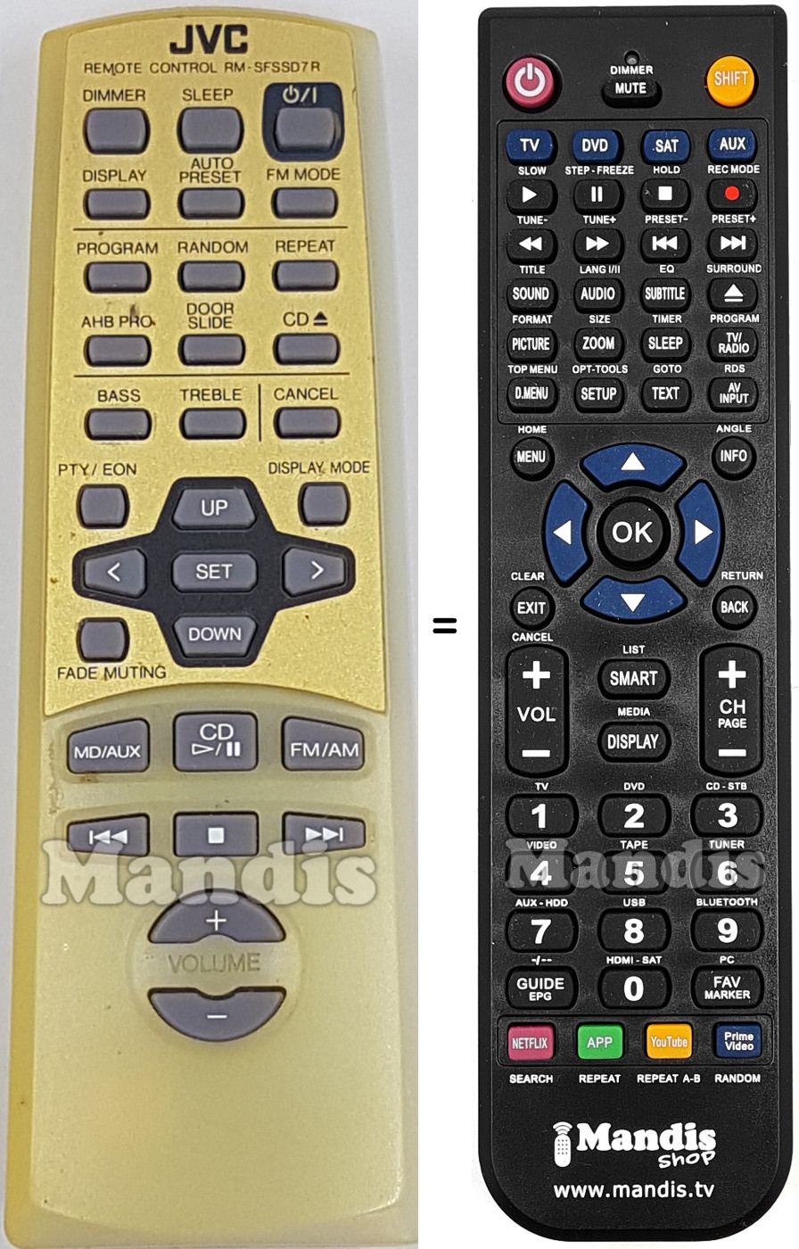This remote control fully replaces your RMSFSSD7R and offers all the functions of the original.