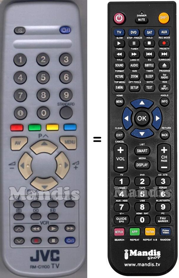 This remote control fully replaces your RM-C1100 (VE30017763) and offers all the functions of the original.