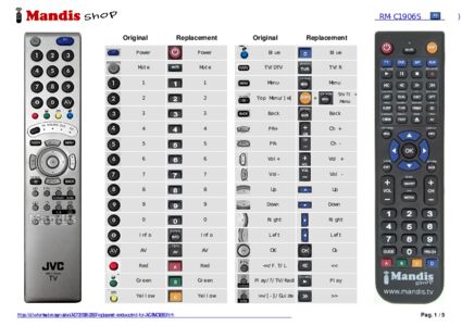 Below, we will show you the correspondence between each button on the original remote control and the button that performs the same function on the replacement remote control. In some cases, you may need to press the SHIFT key before pressing another button to perform certain actions. These additional functions are often not widely used and are included to facilitate understanding of the replacement remote control, or because the original remote control has more buttons than its equivalent.