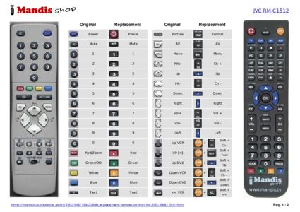 Below, we will show you the correspondence between each button on the original remote control and the button that performs the same function on the replacement remote control. In some cases, you may need to press the SHIFT key before pressing another button to perform certain actions. These additional functions are often not widely used and are included to facilitate understanding of the replacement remote control, or because the original remote control has more buttons than its equivalent.