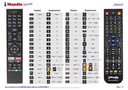 A document is included to help you use the new remote control easily, showing the button correspondence.