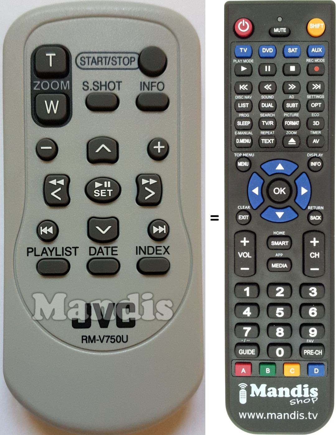 Below, we will show you the correspondence between each button on the original remote control and the button that performs the same function on the replacement remote control. In some cases, you may need to press the SHIFT key before pressing another button to perform certain actions. These additional functions are often not widely used and are included to facilitate understanding of the replacement remote control, or because the original remote control has more buttons than its equivalent.