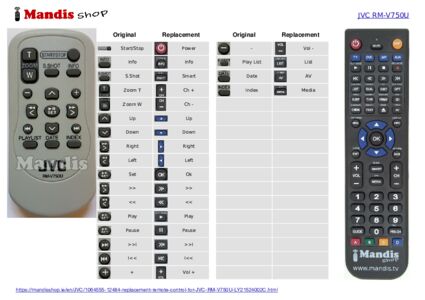 This remote control fully replaces your RMV750U (LY21524002CML) and offers all the functions of the original.