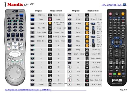 Below, we will show you the correspondence between each button on the original remote control and the button that performs the same function on the replacement remote control. In some cases, you may need to press the SHIFT key before pressing another button to perform certain actions. These additional functions are often not widely used and are included to facilitate understanding of the replacement remote control, or because the original remote control has more buttons than its equivalent.