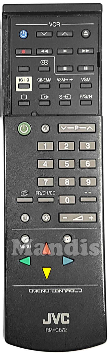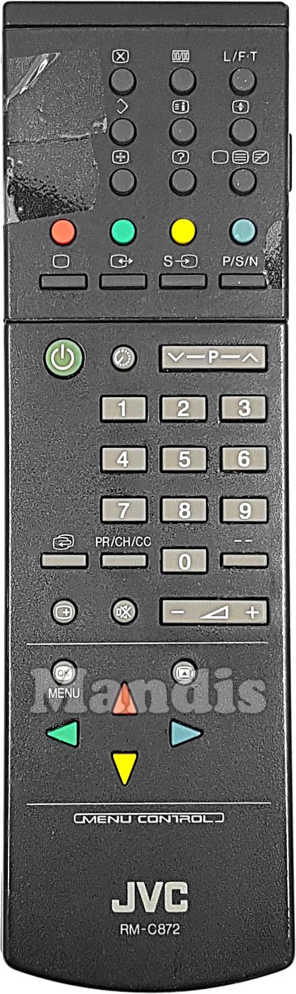 original remote control RM-C872 used for televisions for the brand JVC. This is an original remote control.