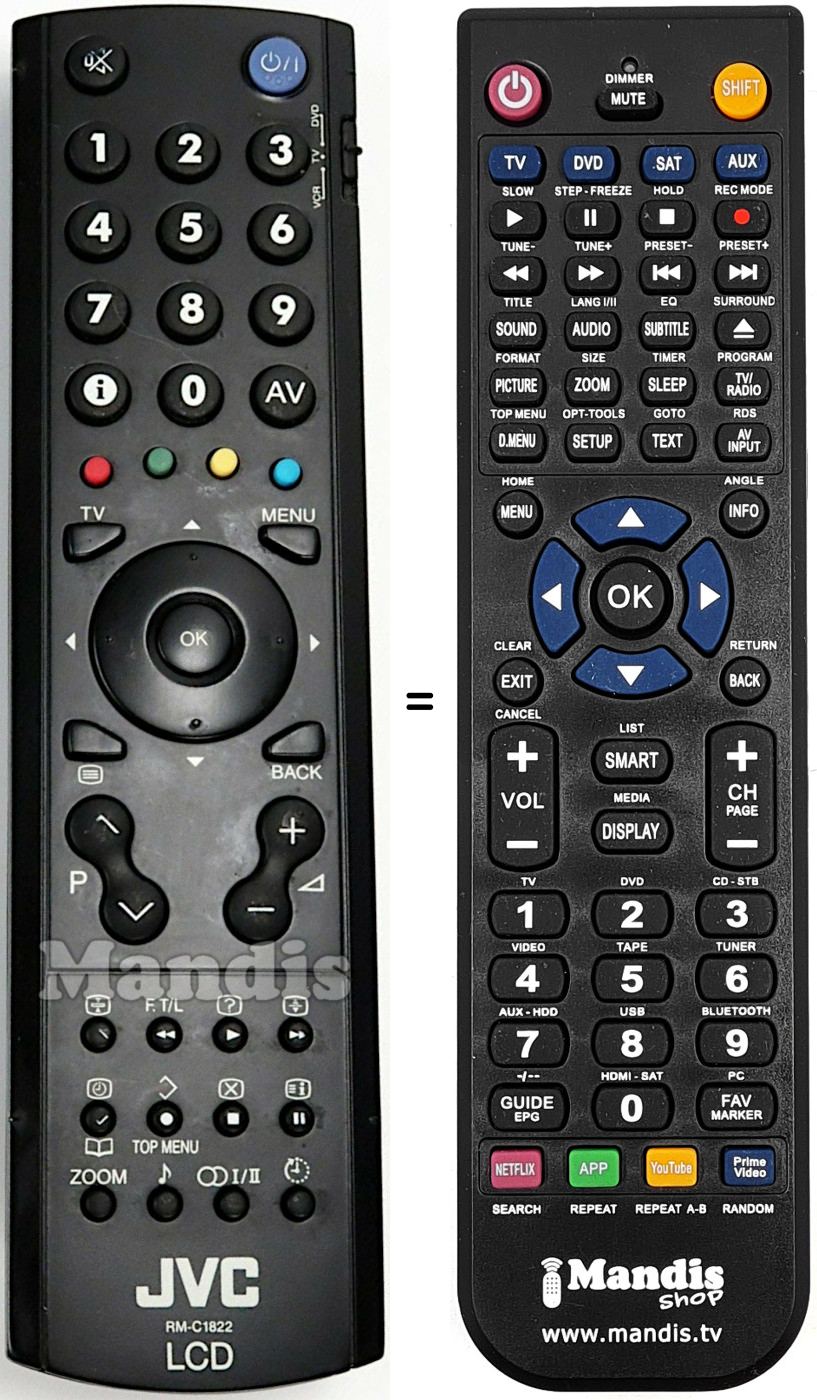 Remote control to replace the original RM-C1822 (RMC1822B1C) and all its functions.