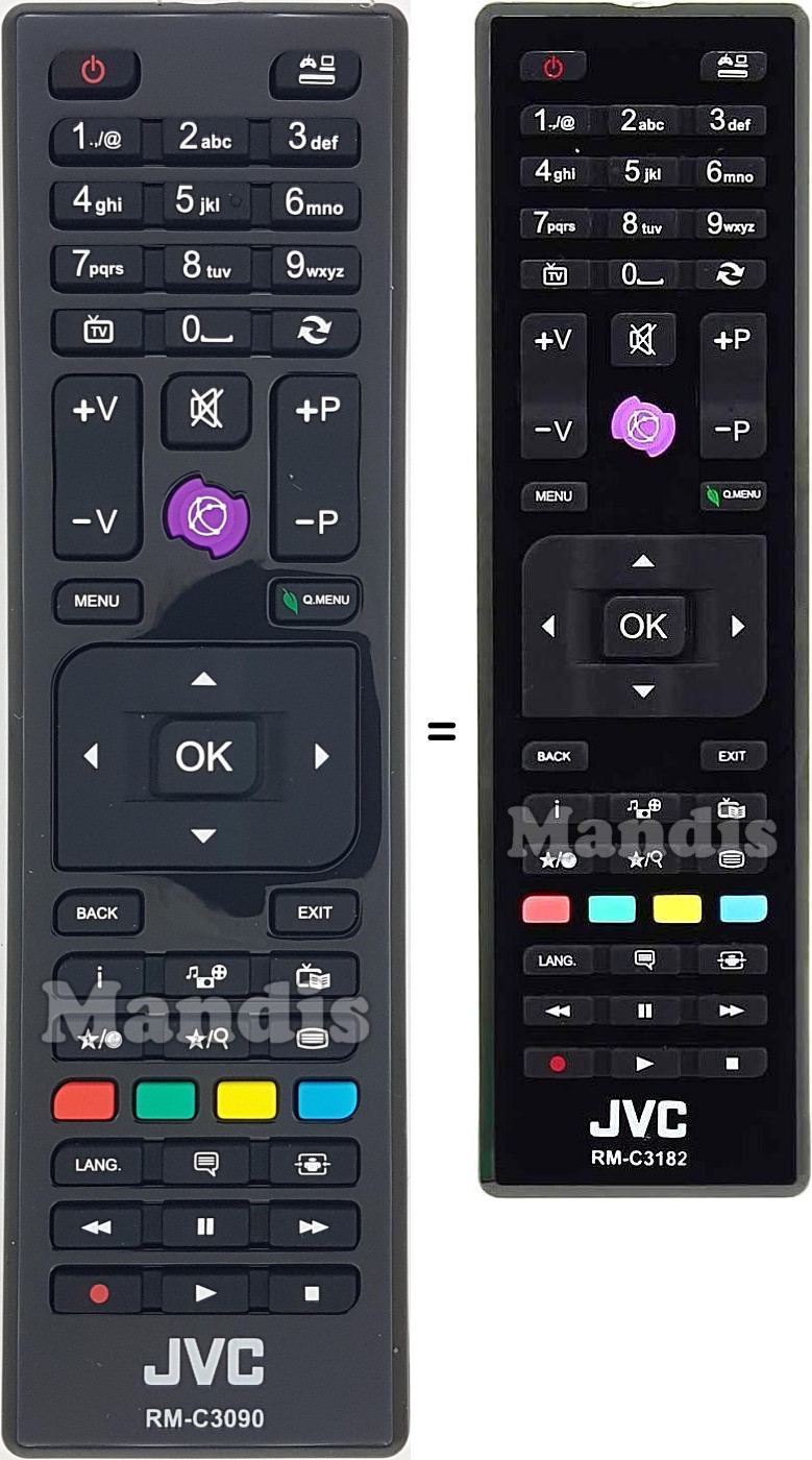 Replacement remote controls that replace in all its functions the remote JVC RM-C3182: