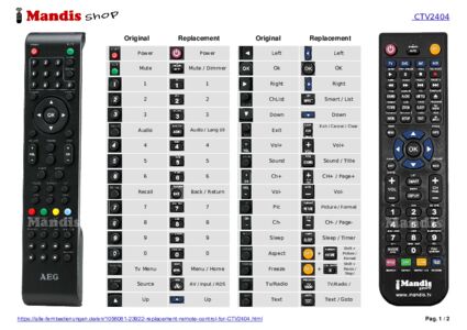 A document is included to help you use the new remote control easily, showing the button correspondence.