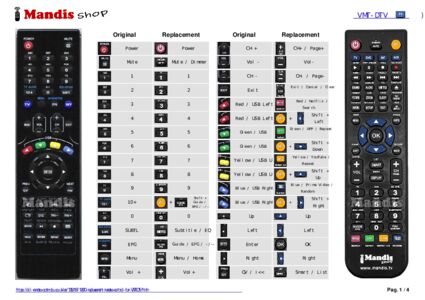 Below, we will show you the correspondence between each button on the original remote control and the button that performs the same function on the replacement remote control. In some cases, you may need to press the SHIFT key before pressing another button to perform certain actions. These additional functions are often not widely used and are included to facilitate understanding of the replacement remote control, or because the original remote control has more buttons than its equivalent.