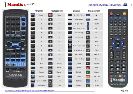Below, we will show you the correspondence between each button on the original remote control and the button that performs the same function on the replacement remote control. In some cases, you may need to press the SHIFT key before pressing another button to perform certain actions. These additional functions are often not widely used and are included to facilitate understanding of the replacement remote control, or because the original remote control has more buttons than its equivalent.