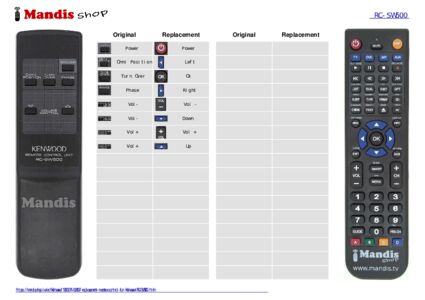 This remote control fully replaces your RC-SW500 and offers all the functions of the original.