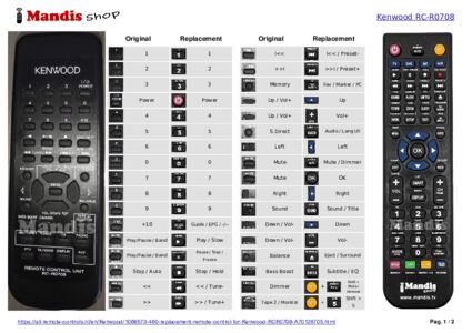 Below, we will show you the correspondence between each button on the original remote control and the button that performs the same function on the replacement remote control. In some cases, you may need to press the SHIFT key before pressing another button to perform certain actions. These additional functions are often not widely used and are included to facilitate understanding of the replacement remote control, or because the original remote control has more buttons than its equivalent.
