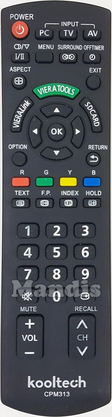 original remote control CPM313 used for televisions for the brand Kooltech. This is an original remote control.