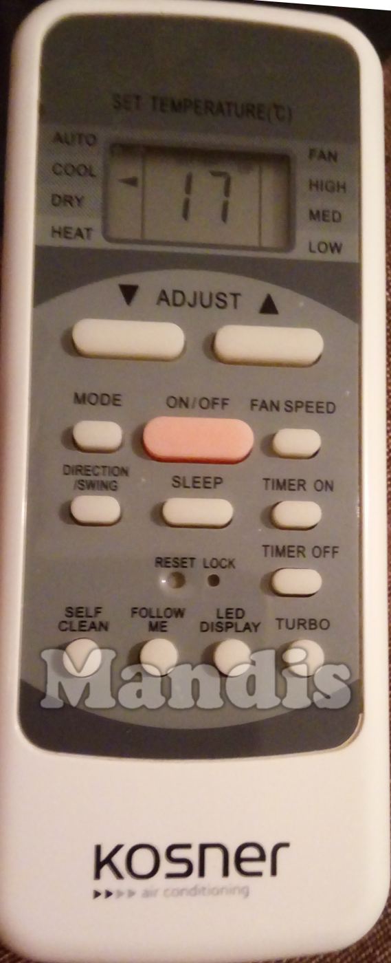 original remote control R5119/BGE used for air conditioners for the brand Kosner. This is an original remote control.