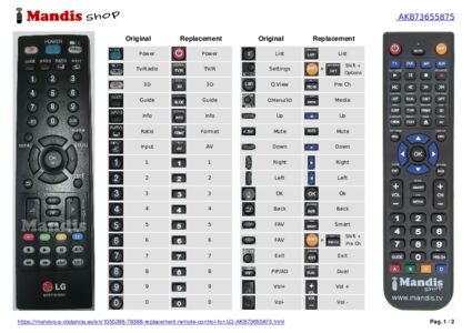 This remote control fully replaces your LG (AKB73655875) and offers all the functions of the original.