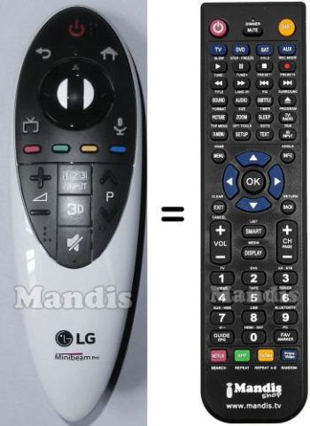 This remote control performs all the functions of the original remote control: Power, Back, Home, Up, Right, Down, Left, Scroll Down, Scroll Up, Guide, Mic, Red, Green, Yellow, Blue, OK, Vol +, Vol -, 123 / Input, 3D, Mute, P +, P -