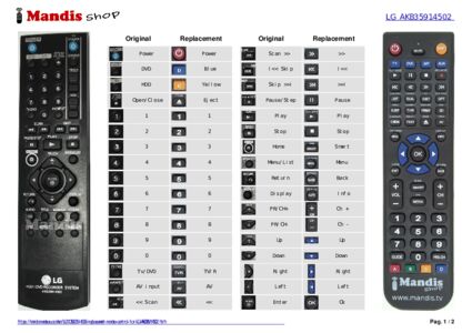A document is included to help you use the new remote control easily, showing the button correspondence.