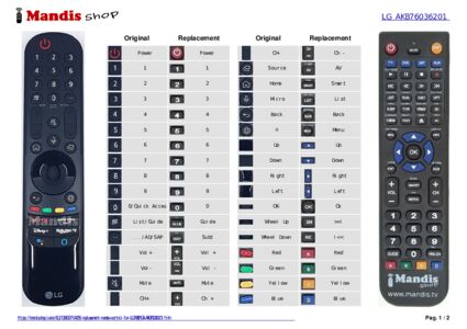 A document is included to help you use the new remote control easily, showing the button correspondence.