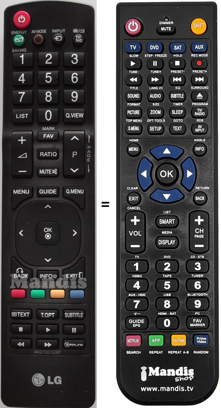 Remote control to replace the original AKB72915207 and all its functions.