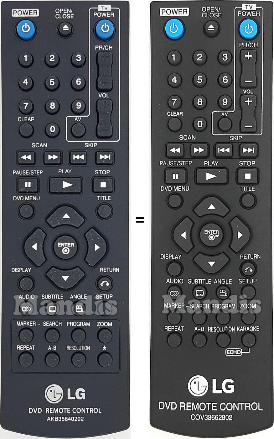 Replacement remote controls that replace in all its functions the remote LG COV33662802: