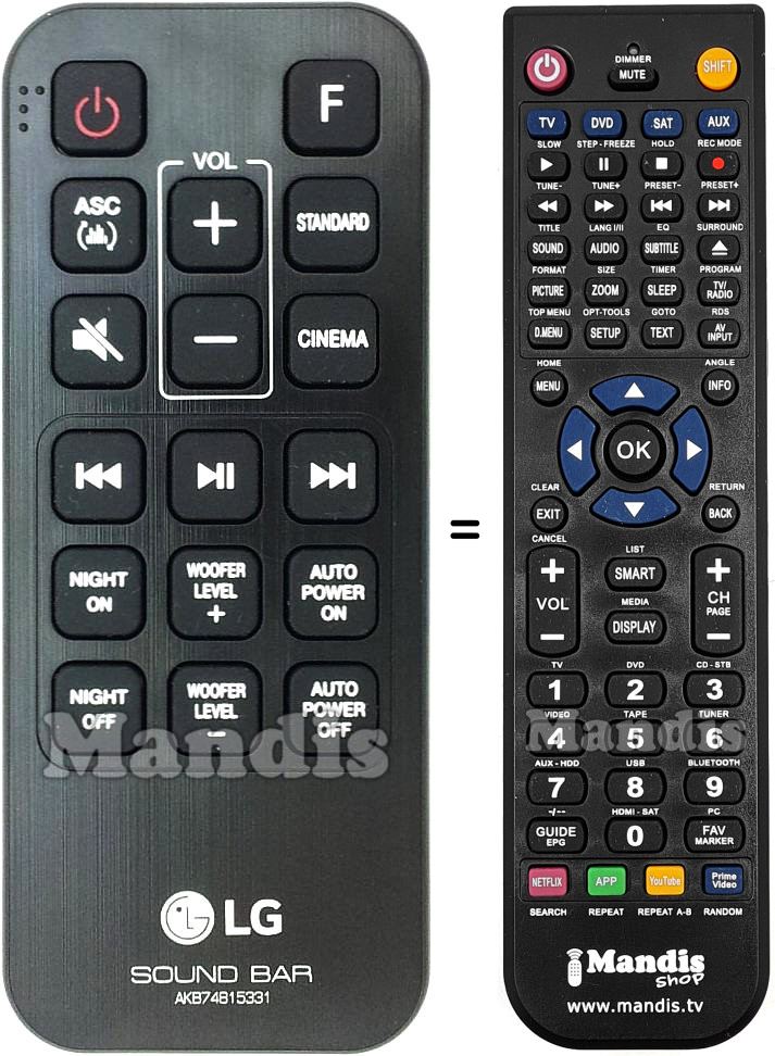 Replacement remote control LG AKB74815341Available in stock22.73 € (VAT included)