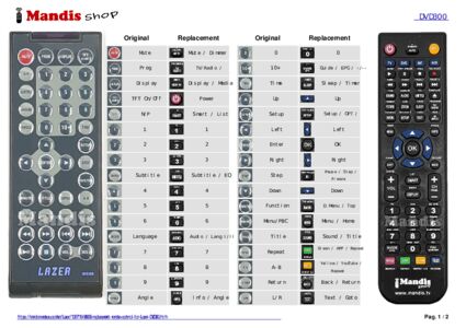 Below, we will show you the correspondence between each button on the original remote control and the button that performs the same function on the replacement remote control. In some cases, you may need to press the SHIFT key before pressing another button to perform certain actions. These additional functions are often not widely used and are included to facilitate understanding of the replacement remote control, or because the original remote control has more buttons than its equivalent.