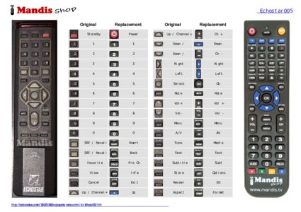 Attention: This remote control replaces most of the functions of your Echostar005, but not all. The main functions are included, but some secondary functions may not be available.