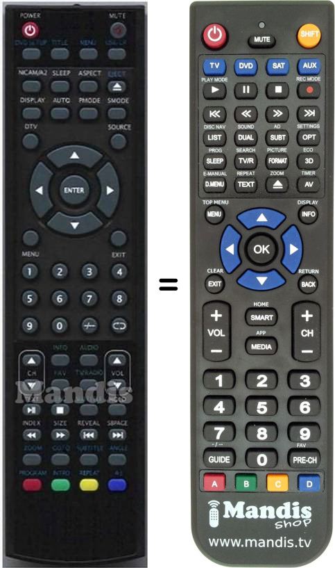 This remote control fully replaces your DVT228 and offers all the functions of the original.