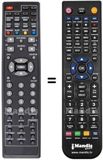 Below, we will show you the correspondence between each button on the original remote control and the button that performs the same function on the replacement remote control. In some cases, you may need to press the SHIFT key before pressing another button to perform certain actions. These additional functions are often not widely used and are included to facilitate understanding of the replacement remote control, or because the original remote control has more buttons than its equivalent.