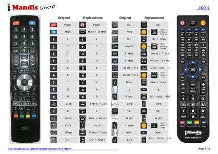 A document is included to help you use the new remote control easily, showing the button correspondence.