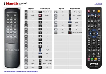 Below, we will show you the correspondence between each button on the original remote control and the button that performs the same function on the replacement remote control. In some cases, you may need to press the SHIFT key before pressing another button to perform certain actions. These additional functions are often not widely used and are included to facilitate understanding of the replacement remote control, or because the original remote control has more buttons than its equivalent.