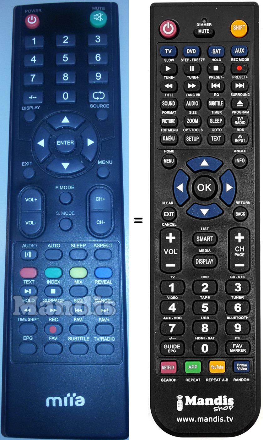 Remote control to replace the original and all its functions.