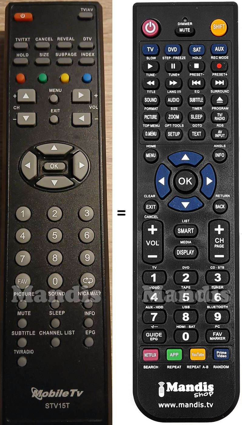 This remote control fully replaces your STV15T (ver 1) and offers all the functions of the original.