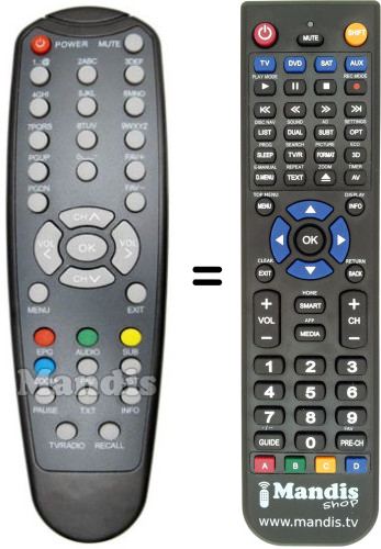 Below, we will show you the correspondence between each button on the original remote control and the button that performs the same function on the replacement remote control. In some cases, you may need to press the SHIFT key before pressing another button to perform certain actions. These additional functions are often not widely used and are included to facilitate understanding of the replacement remote control, or because the original remote control has more buttons than its equivalent.