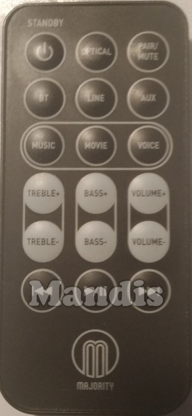 original remote control SNO-BAR-BLK used for soundbar for the brand Majority. This is an original remote control.
