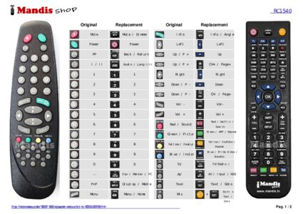 Below, we will show you the correspondence between each button on the original remote control and the button that performs the same function on the replacement remote control. In some cases, you may need to press the SHIFT key before pressing another button to perform certain actions. These additional functions are often not widely used and are included to facilitate understanding of the replacement remote control, or because the original remote control has more buttons than its equivalent.
