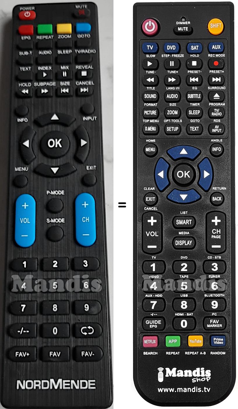 This remote control fully replaces your ND32N2400S and offers all the functions of the original.
