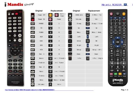 Home > Brands > Remote controls Marantz > Remote control for Marantz RC002SR > Interactive key distribution Marantz RC002SR