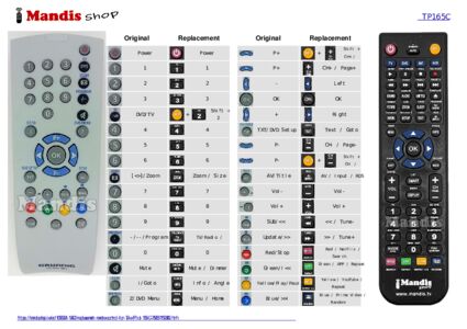 Below, we will show you the correspondence between each button on the original remote control and the button that performs the same function on the replacement remote control. In some cases, you may need to press the SHIFT key before pressing another button to perform certain actions. These additional functions are often not widely used and are included to facilitate understanding of the replacement remote control, or because the original remote control has more buttons than its equivalent.