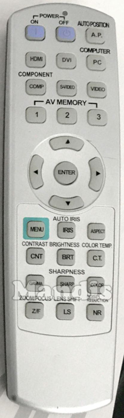 Power On, Power Off, Auto Position, HDMI, DVI, Computer, Component, S-Video, Video, AV Memory 1, AV Memory 2, AV Memory 3, Up, Left, Enter, Right, Down, Menu, Auto Iris, Aspect, Contrast, Brightness, Color Temp., Gamma, Sharpness, Color, Zoom / Focus, Lens Shift, Noise Reduction