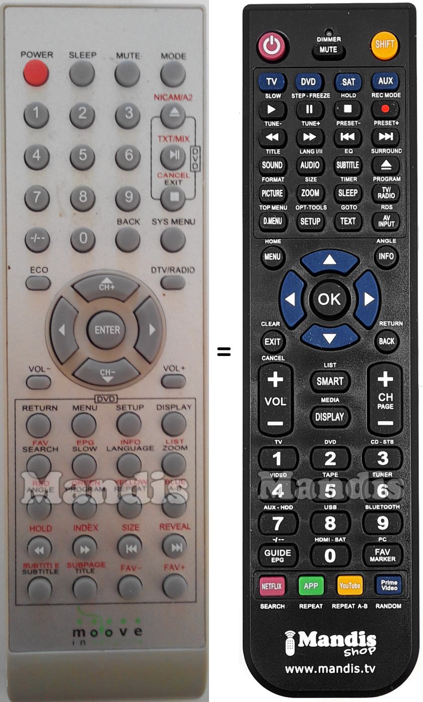 This remote control fully replaces your TV155 and offers all the functions of the original.
