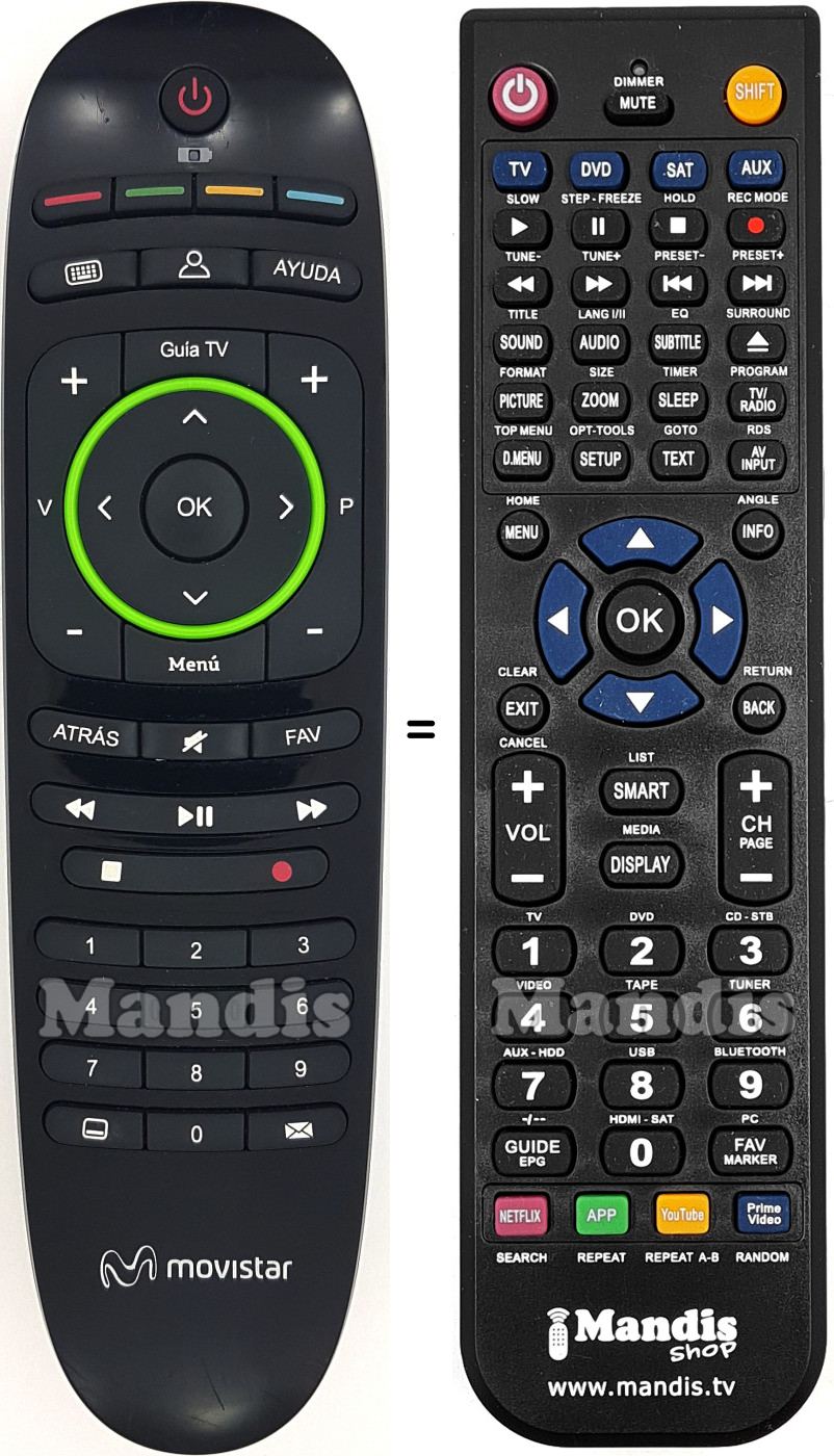 This remote control fully replaces your Movistar-2 and offers all the functions of the original.