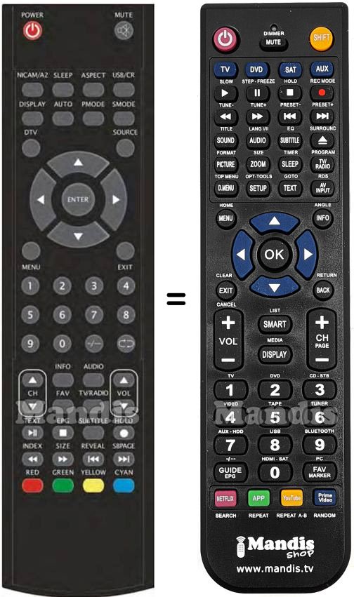 This remote control fully replaces your NVR7054TTG19 and offers all the functions of the original.