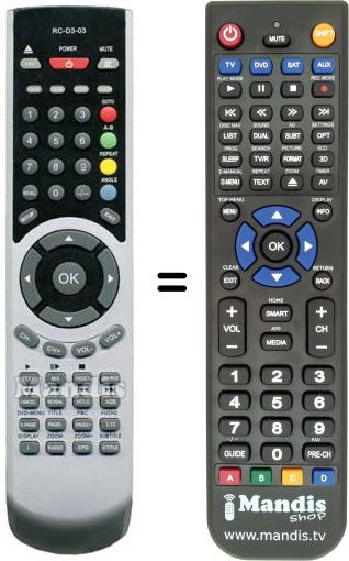 This remote control fully replaces your RC-D3-03 and offers all the functions of the original.