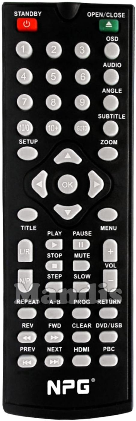 Replacement remote controls that replace in all its functions the remote NPG DVD-210 HZU:
