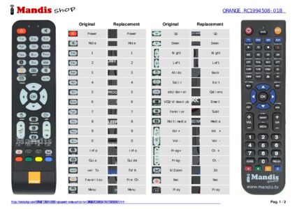 Below, we will show you the correspondence between each button on the original remote control and the button that performs the same function on the replacement remote control. In some cases, you may need to press the SHIFT key before pressing another button to perform certain actions. These additional functions are often not widely used and are included to facilitate understanding of the replacement remote control, or because the original remote control has more buttons than its equivalent.