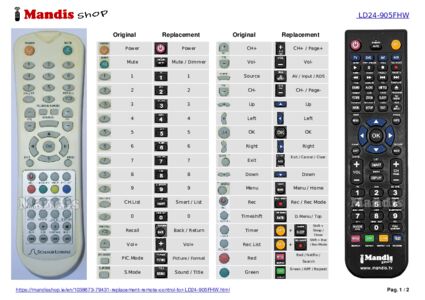 A document is included to help you use the new remote control easily, showing the button correspondence.