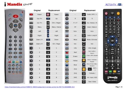Below, we will show you the correspondence between each button on the original remote control and the button that performs the same function on the replacement remote control. In some cases, you may need to press the SHIFT key before pressing another button to perform certain actions. These additional functions are often not widely used and are included to facilitate understanding of the replacement remote control, or because the original remote control has more buttons than its equivalent.