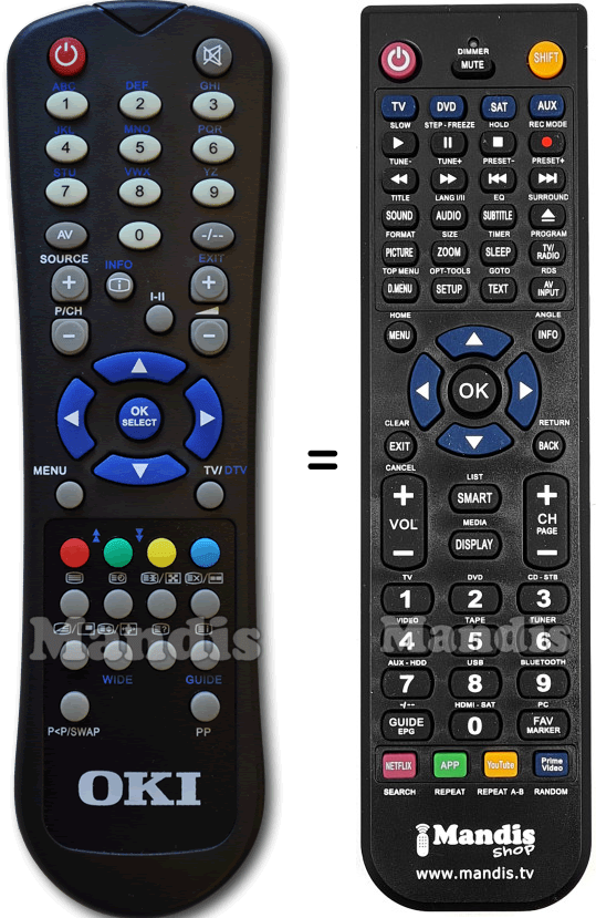 This remote control fully replaces your RC1055 (OKIRC1055) and offers all the functions of the original.